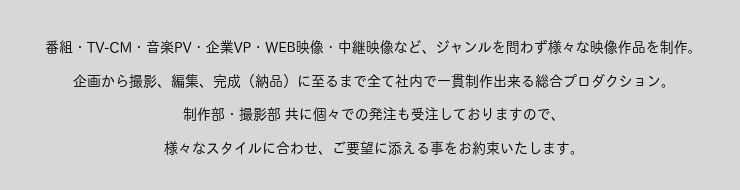 朝日放送 株式会社アットアームズ 株式会社エキスプレス 大阪市立大学 大阪府立母子保健総合医療センター 株式会社学習研究社 株式会社要堂 株式会社キャンディーフィルム 参天製薬株式会社 株式会社大広 株式会社大広ONES T601株式会社 株式会社電通 株式会社電通CR`X 株式会社東通 日本ペイント販売株式会社 株式会社西田機械工作所 株式会社バッハベルク パナソニック映像株式会社 株式会社ファーマ インターナショナル フジテレビジョン 株式会社フラッグ 株式会社放送映画製作所 毎日放送 株式会社読広クロスコム 讀賣テレビ放送 株式会社CNインターボイス 株式会社IMAGICAイメージワークス 株式会社MBS企画